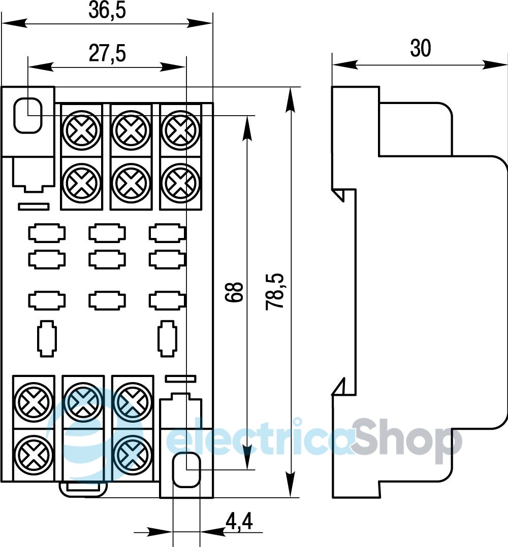 Роз'єм модульний e.control.p103s для проміжного реле 10А на 3 групи контактів призначені для кріплення проміжного реле на 35 мм монтажній DIN-рейці.