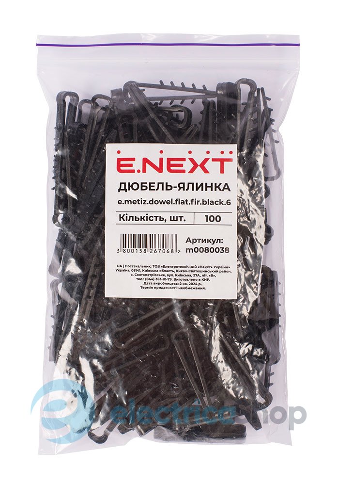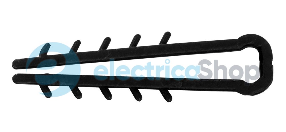 Дюбель - ялинка 6 mm для плоского проводу e.metiz.dowel.flat.fir.black.6, чорний , 100 шт. використовується для зручного кріплення круглого або плоского кабелю до поверхонь. У процесі монтажу необхідно попередньо просвердлити отвір у поверхні та обхопити затискачем дюбеля кабель, зафіксувати його в цьому отворі. Дане рішення кріплення кабелю зручне та швидке в монтажі, надійне та бюджетне.