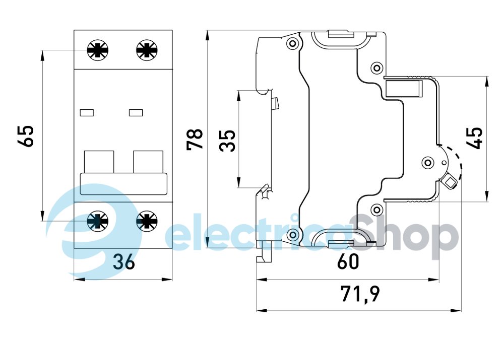 Модульні автоматичні вимикачі серії e.mcb.stand.60.DC призначені для захисту електричних мереж постійного струму від струмів перевантаження та короткого замикання, а також для нечастих оперативних комутацій eлектричних мереж.