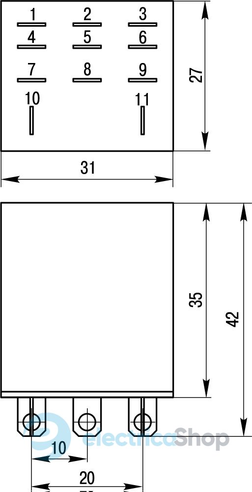 Реле проміжне e.control.p1031 10А, 3 групи контактів, котушка 12В DC призначені для розмноження та передачі сигналів управління виконавчим елементам у ланцюгах управління та автоматизації.