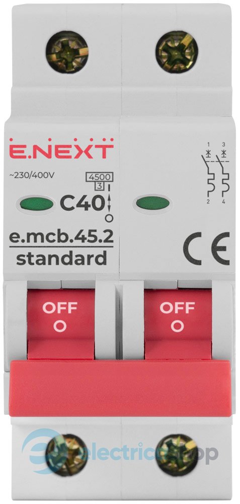 Модульний автоматичний вимикач e.mcb.stand.45.2.C40, 2р, 40А, C, 4,5 кА призначені для захисту електричних мереж та обладнання низької напруги від струмів перевантаження та короткого замикання, а також нечастих оперативних комутації електричних мереж.