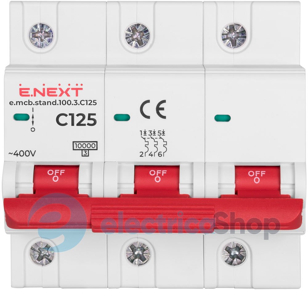 Модульний автоматичний вимикач e.mcb.stand.100.3.D125, 3P, 125А, D, 10kA, s026004 E.NEXT