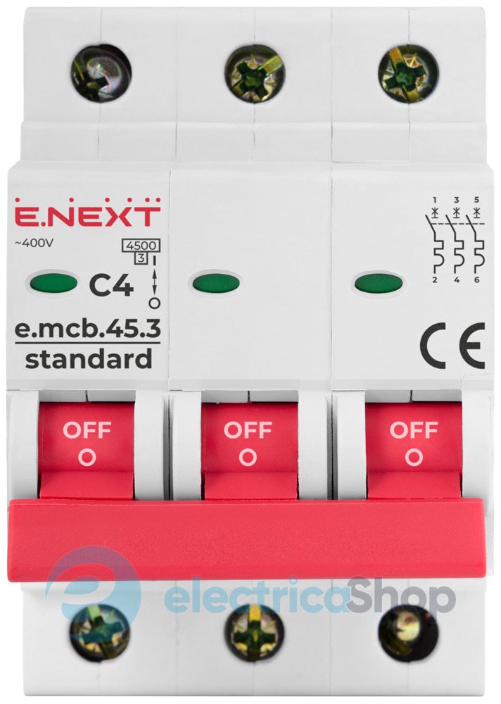 Модульний автоматичний вимикач e.mcb.stand.45.3.C4, 3р, 4А, C, 4,5 кА призначені для захисту електричних мереж та обладнання низької напруги від струмів перевантаження та короткого замикання, а також нечастих оперативних комутації електричних мереж.
