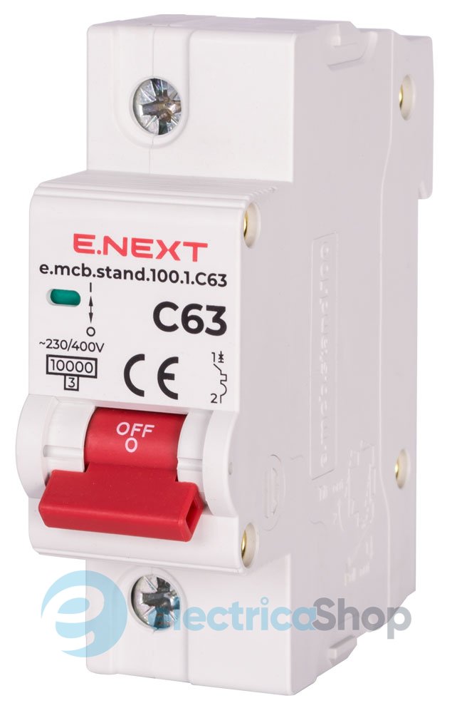 Модульний автоматичний вимикач e.mcb.stand.100.1.C100, 1P, 100А, C, 10kA, s002206 E.NEXT