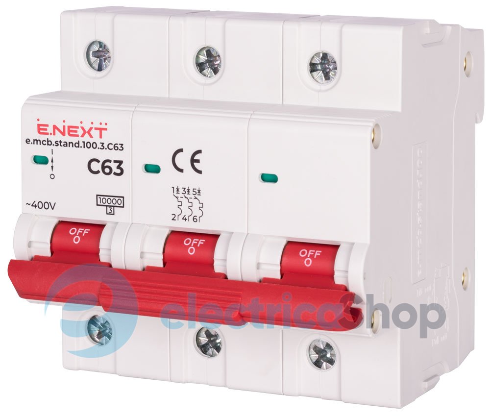 Модульний автоматичний вимикач e.mcb.stand.100.3.D125, 3P, 125А, D, 10kA, s026004 E.NEXT