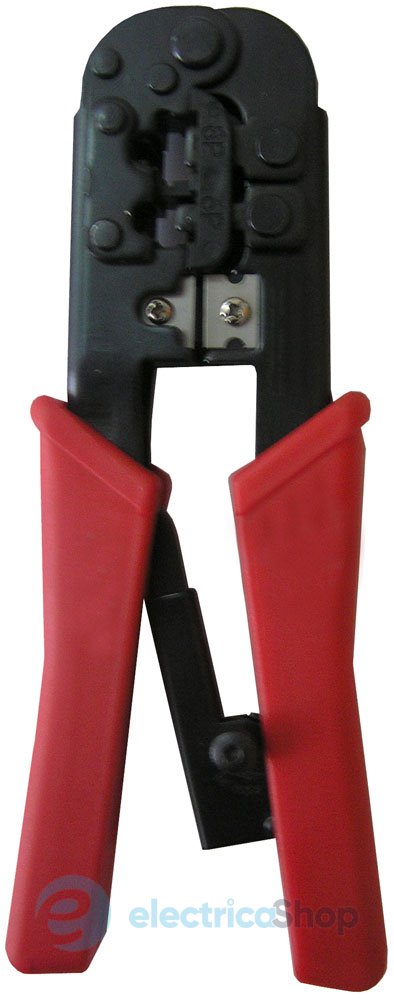 Інструмент e.tool.crimp.ht.568.r для обтиску 6-і і 8-і PIN конекторів, призначений для швидкого підключення мережного або телефонного дроту до роз'ємів типу RJ12(6p), RJ45(8p). Інструмент має механізм регулюючого розблокування, що унеможливлює недоопресування дроту в роз'єм.