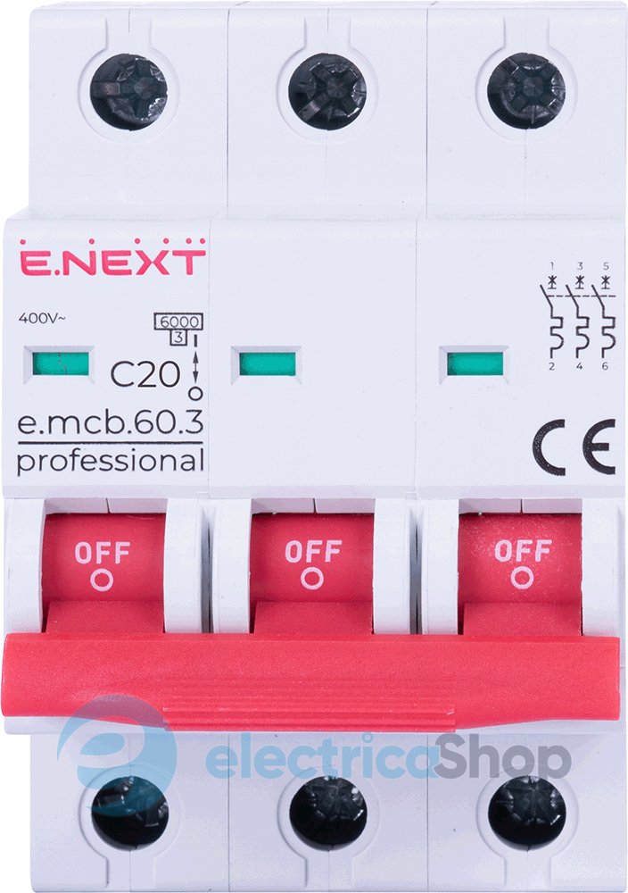 Модульний автоматичний вимикач e.mcb.pro.60.3.C 20 new, 3р, 20А, C, 6кА new призначені для захисту низьковольтних електричних мереж та обладнання від струмів перевантаження та короткого замикання, а також нечастих оперативних комутацій електричних мереж