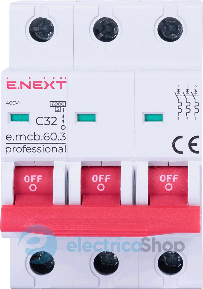 Модульний автоматичний вимикач e.mcb.pro.60.3.C 32 new, 3р, 32А, C, 6кА new призначені для захисту низьковольтних електричних мереж та обладнання від струмів перевантаження та короткого замикання, а також нечастих оперативних комутацій електричних мереж