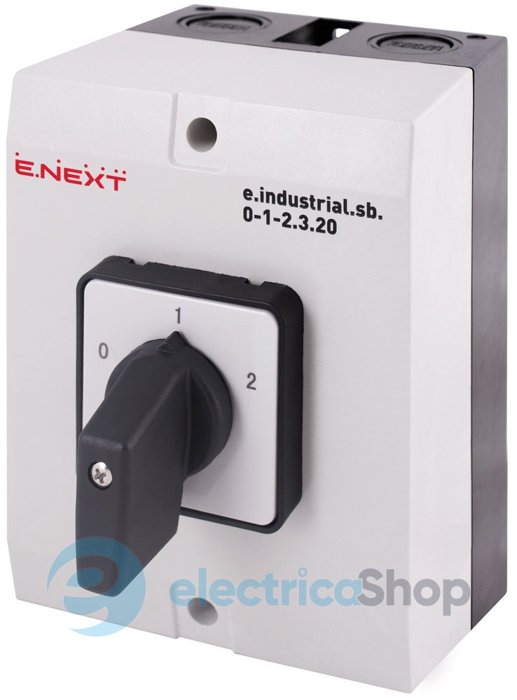 Пакетний перемикач в корпусі e.industrial.sb.0-1-2.3.20, 3р, 20А (0-1-2) призначені для неавтоматичного включення та відключення ділянок електричних кіл. Застосовуються в розподільчих шафах, шафах керування та ін. Рід приводу: центральна рукоятка. Положення перемикача: 0-1-2. Конструкція: кулачкова.