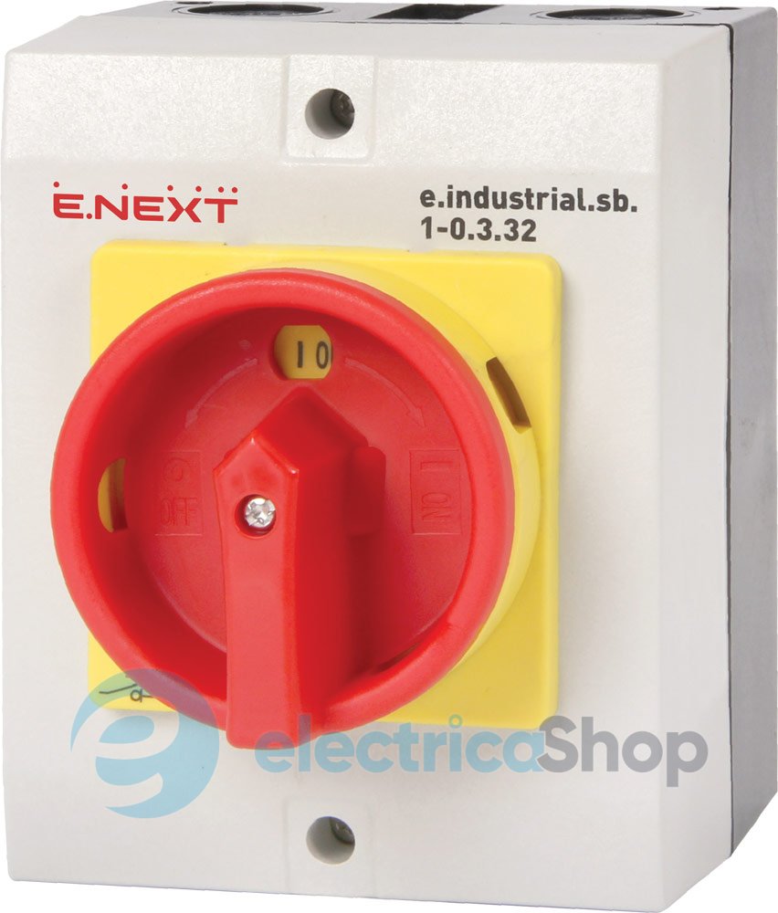 Пакетний перемикач в корпусі e.industrial.sb.1-0.3.32, 3р, 32А (0-1) призначені для неавтоматичного включення, відключення та перемикання ділянок електричних ланцюгів змінного струму до 440 В та постійного струму до 32В. Рід приводу: центральна ручка з можливістю опломбування. Положення перемикача: 0-1.