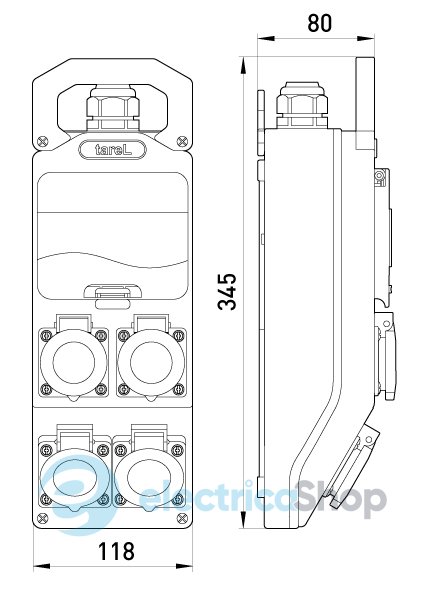 Монтажний набір - вікно 5 мод, 4х16А 2Р+Z 250V зі штатними силовими роз'ємами. Мінімальний діаметр кабелю живлення: 14 мм.