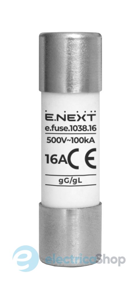 Запобіжник e.fuse.1038.16, типорозмір 10х38, 16А призначений для захисту низьковольтних електричних мереж та обладнання від струмів перевантаження та короткого замикання.