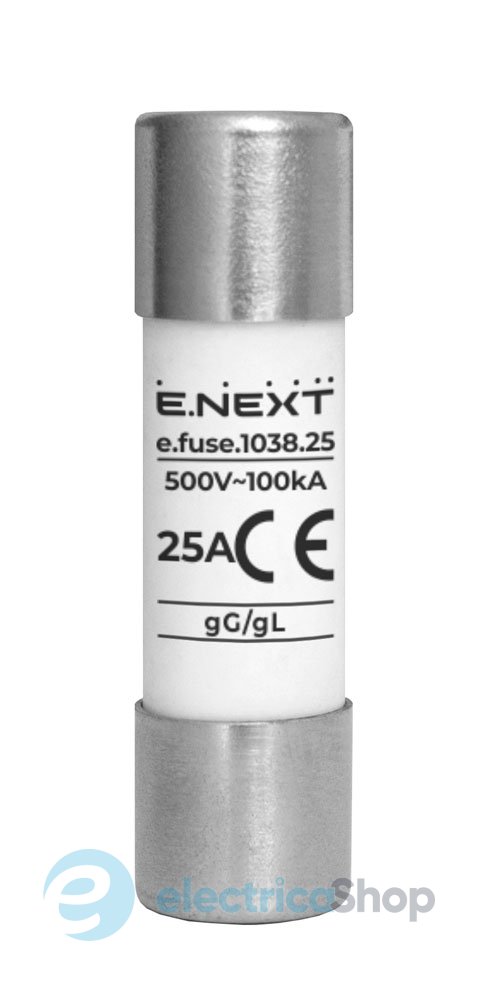 Запобіжник e.fuse.1038.25, типорозмір 10х38, 25А призначений для захисту низьковольтних електричних мереж та обладнання від струмів перевантаження та короткого замикання.