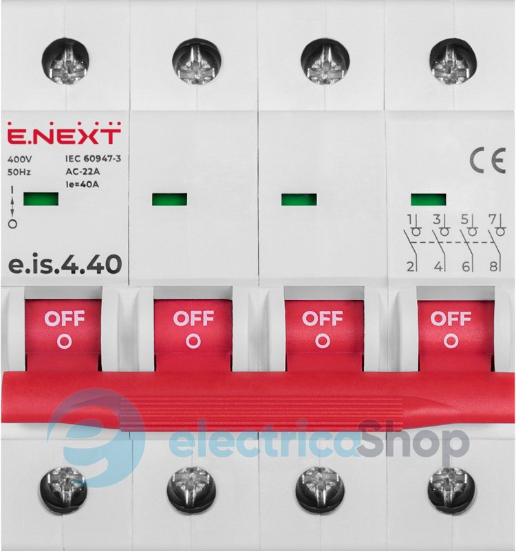 Вимикач навантаження на DIN-рейку e.is.pro призначений для неавтоматичної коммутації та відокремлення електричних кіл.