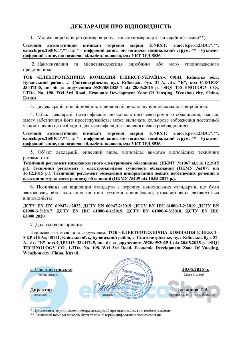 Силові автоматичні вимикачі для постійного струму e.mccb.pro.DC призначені для захисту електричних мереж постійного струму DC напругою до 250 В від перевантажень і коротких замикань. Вони використовуються у промислових та комерційних електроустановках, де потрібен високий рівень вимикальної здатності (20 кА) та надійний захист обладнання.