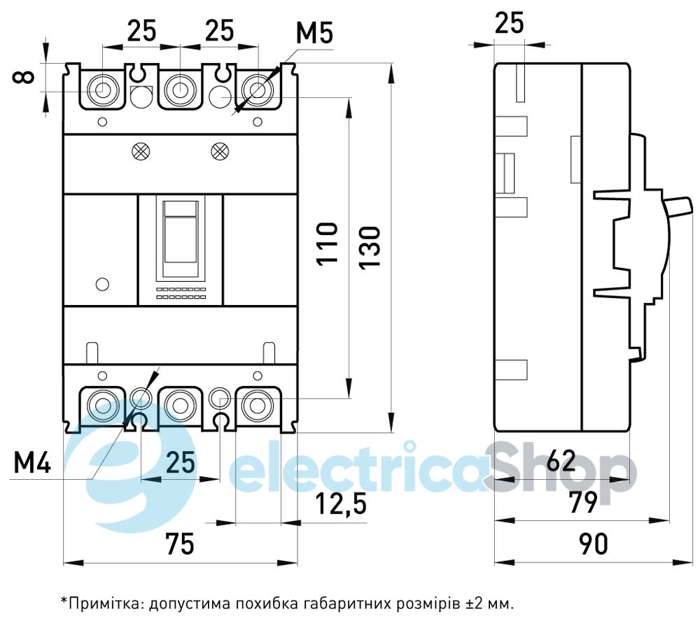 - Макс. перетин провідників, що приєднуються, мм?: 12,5*3