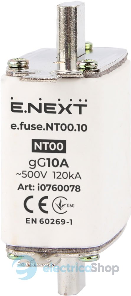 Запобіжник плавкий e.fuse.NT00.10, габарит 00, 10А призначені для захисту низьковольтних електричних мереж та обладнання від струмів перевантаження та короткого замикання.