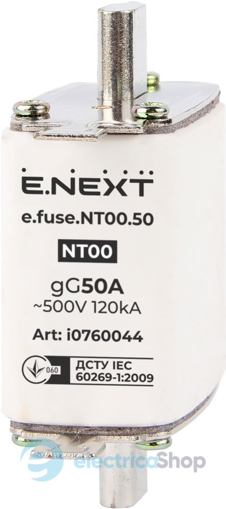 Запобіжник плавкий e.fuse.NT00.50, габарит 00, 50А призначені для захисту низьковольтних електричних мереж та обладнання від струмів перевантаження та короткого замикання.