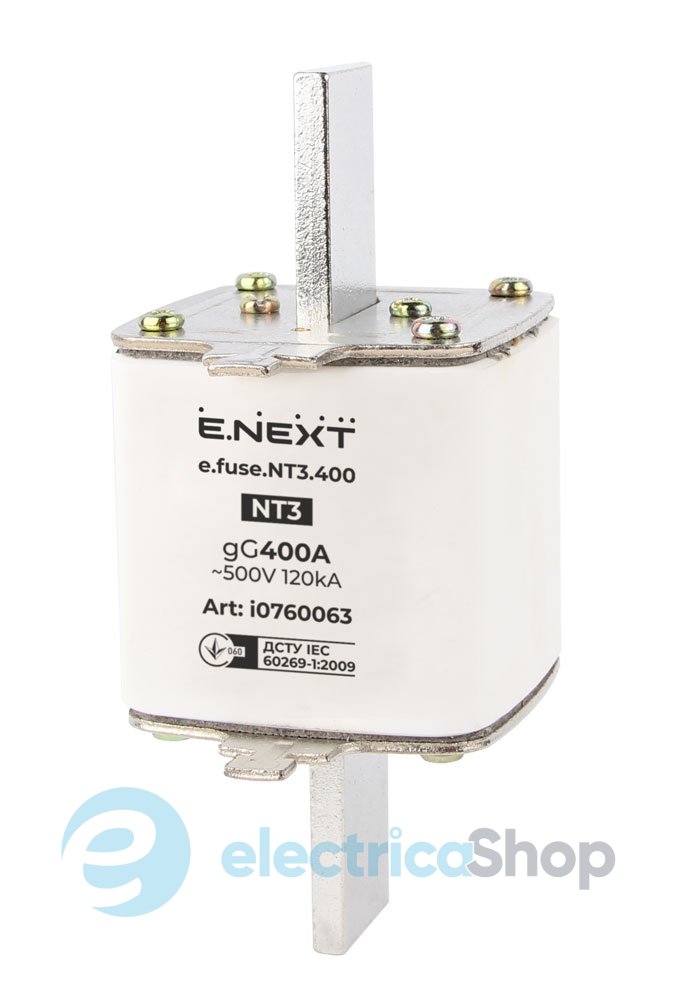 Запобіжник плавкий e.fuse.NT3.400, габарит 3, 400А призначені для захисту низьковольтних електричних мереж та обладнання від струмів перевантаження та короткого замикання.