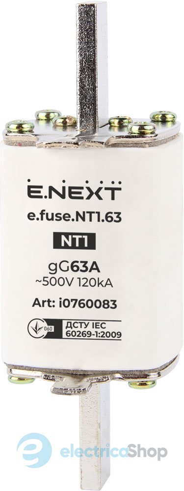 Запобіжник плавкий e.fuse.NT1.63, габарит 0, 63 А призначені для захисту низьковольтних електричних мереж та обладнання від струмів перевантаження та короткого замикання.