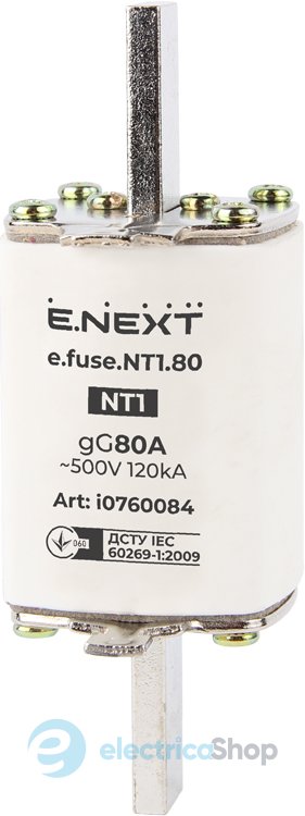 Запобіжник плавкий e.fuse.NT1.80, габарит 0, 80А призначені для захисту низьковольтних електричних мереж та обладнання від струмів перевантаження та короткого замикання.