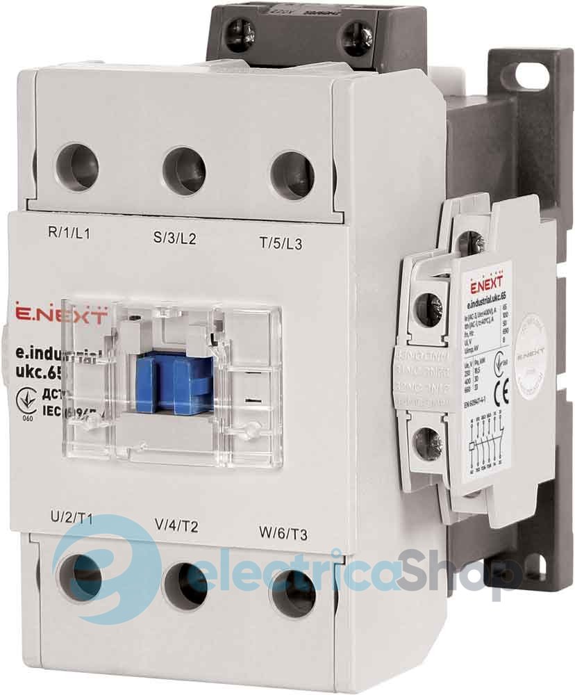 Контактор e.industrial.ukc.65.24, 65А, 24В, 3P, 1no+1nc призначені для використання в стаціонарних установках дистанційного пуску, зупинення та реверсування безпосереднім підключенням до мережі 3-фазних асинхронних електродвигунів з короткозамкненим ротором, а також для комутацій ланцюгів групового освітлення та інших слабоіндуктивних навантажень.