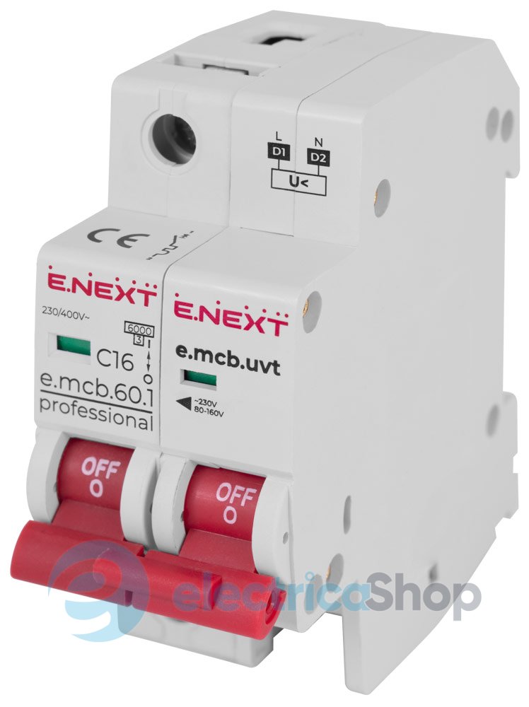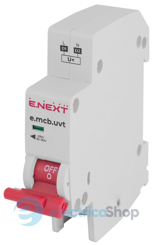 Розчіплювач мінімальної напруги e.mcb.uvt, призначений для відключення автоматичних вимикачів серії e.mcb.stand.45 та e.mcb.pro.60, коли напруга мережі зменшується до 80-160 В.