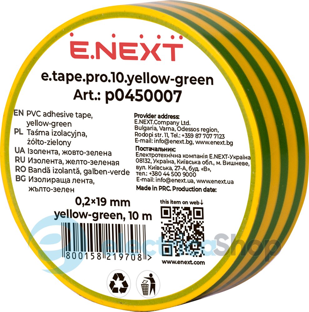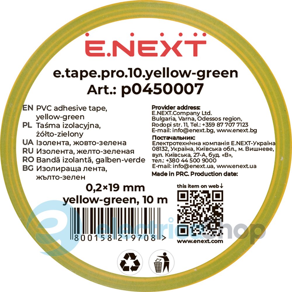 Ізоляційна стрічка e.tape.pro.10.green із самозгасаючого ПВХ, зелена (10м) p0450003 E.NEXT