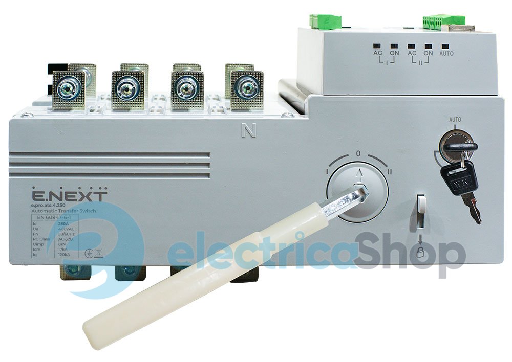 Пристрій АВР E.Next призначений для автоматичного перемикання на резервне живлення електричних 3-фазних ланцюгів змінного струму напругою до 400 В та частотою 50 Гц.