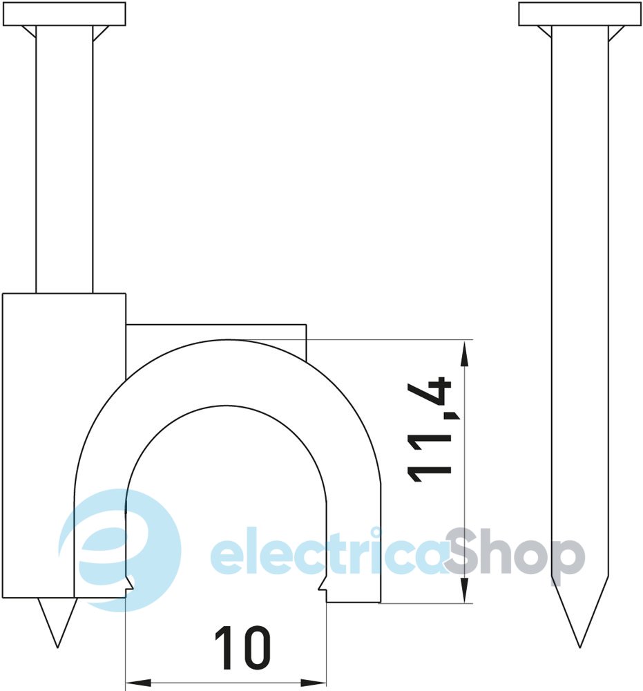 Скоба кругла e.ccc.stand.10 (100шт) призначений для прикріплення проводів та кабелів з круглим перерізом до поверхонь стін та стелі.
