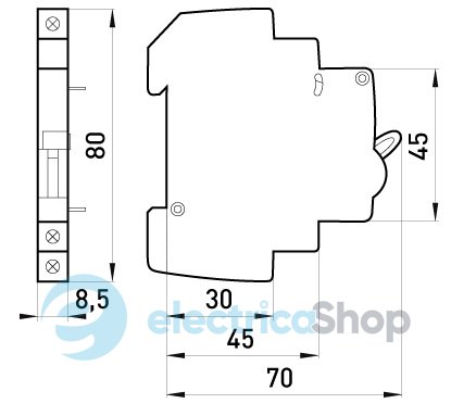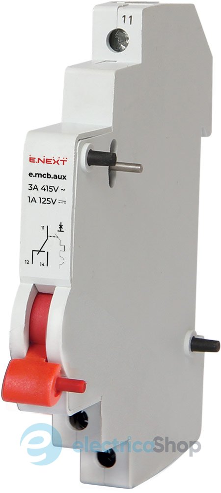 Додатковий контакт e.mcb.aux призначений для індикації стану контактної групи автоматичних вимикачів серій e.standard та e.prо у ланцюгах керування та сигналізації. Контакт встановлюється з лівого боку модульних автоматичних вимикачів та входить у зчеплення штифтами з розчіплювачем та рукояткою управління автоматичного вимикача.