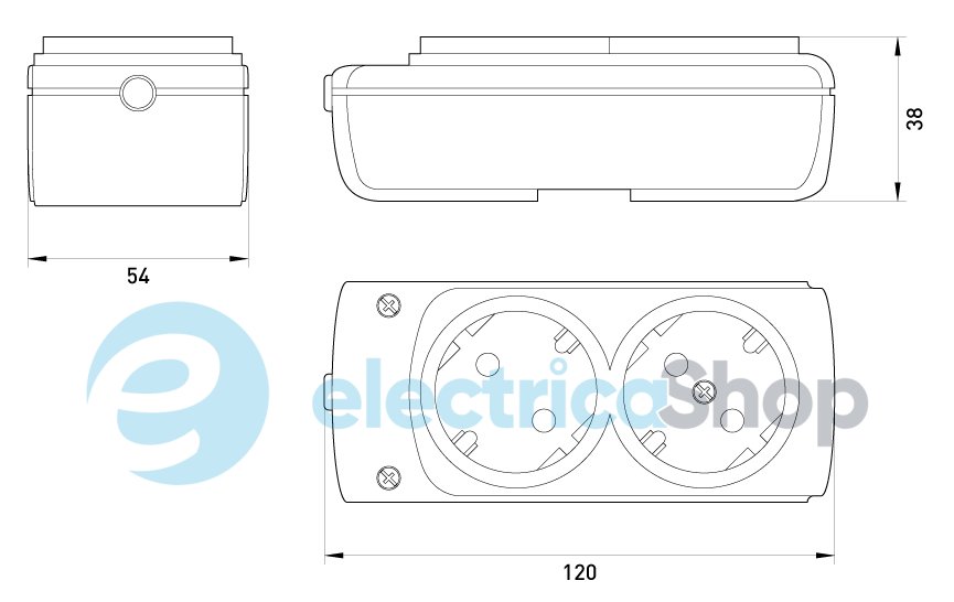 Колодка e.t.es.2.z 2 гнізда, з з/к призначені для нестаціонарного підключення кількох користувачів до електричної мережі змінного струму 220-240В із сумарним струмом навантаження не більше 16А.