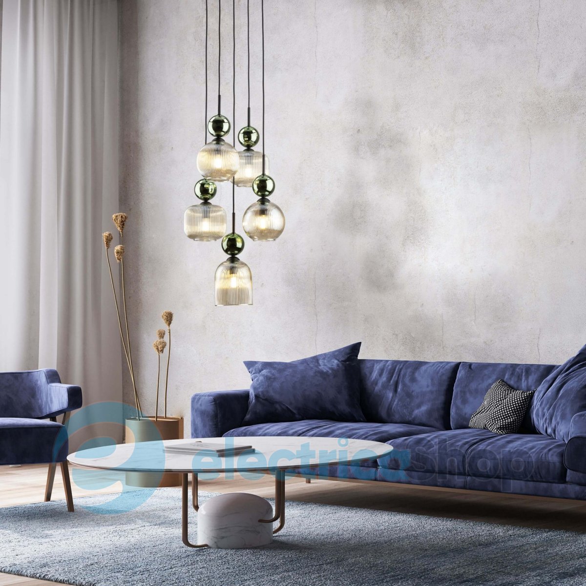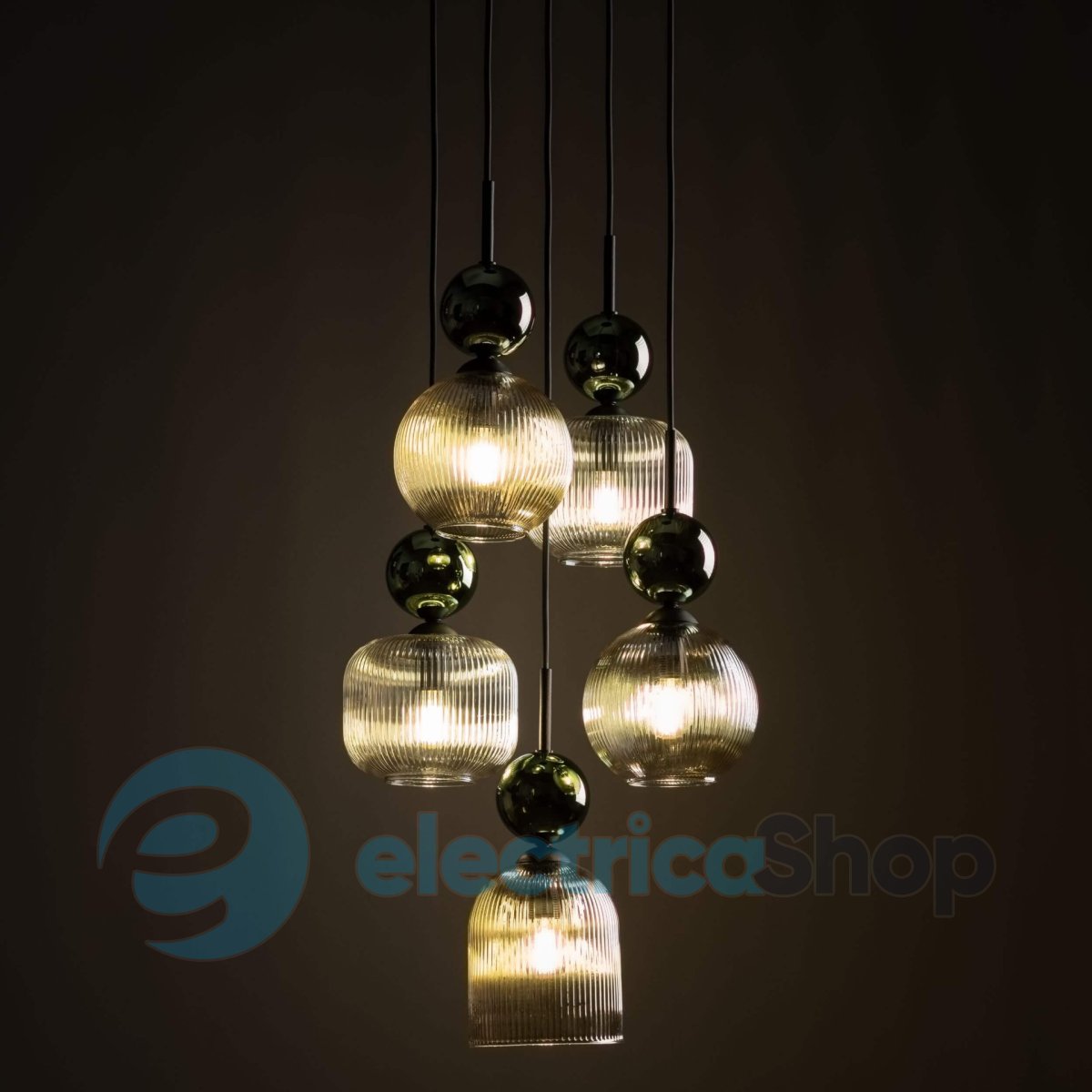 Люстра TK-Lighting SOPHIA GREEN COGNAC 11149 матиме гарний вигляд у сучасних інтер'єрах, підійде для стилістики модерн та мінімалізм. Арматура виготовлена з металу, плафони скляні.