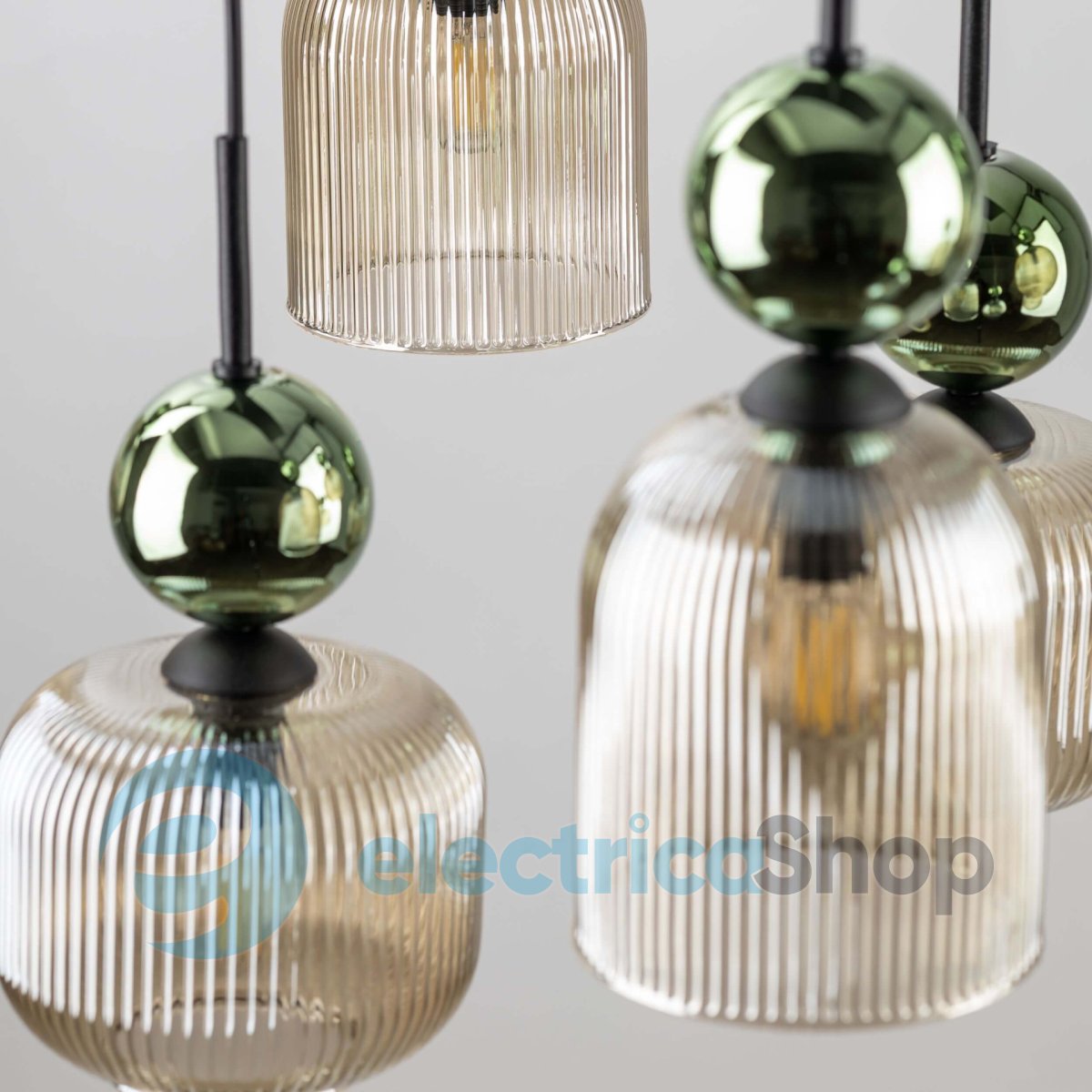 Люстра TK-Lighting SOPHIA GREEN COGNAC 11151 матиме гарний вигляд у сучасних інтер'єрах, підійде для стилістики модерн та мінімалізм. Арматура виготовлена з металу, плафони скляні.