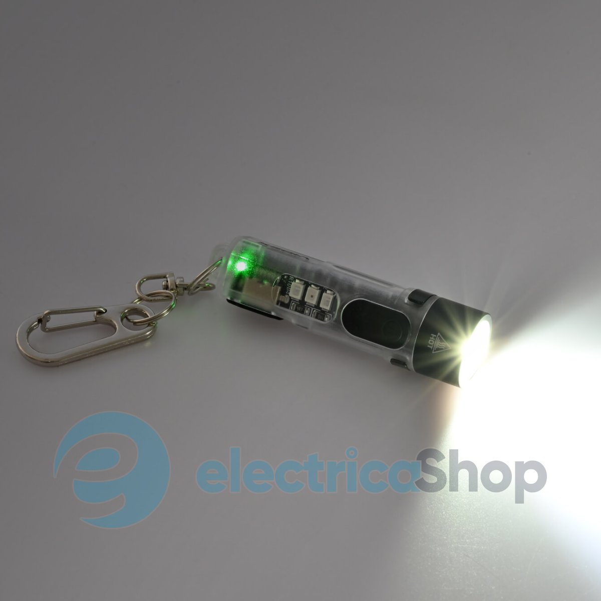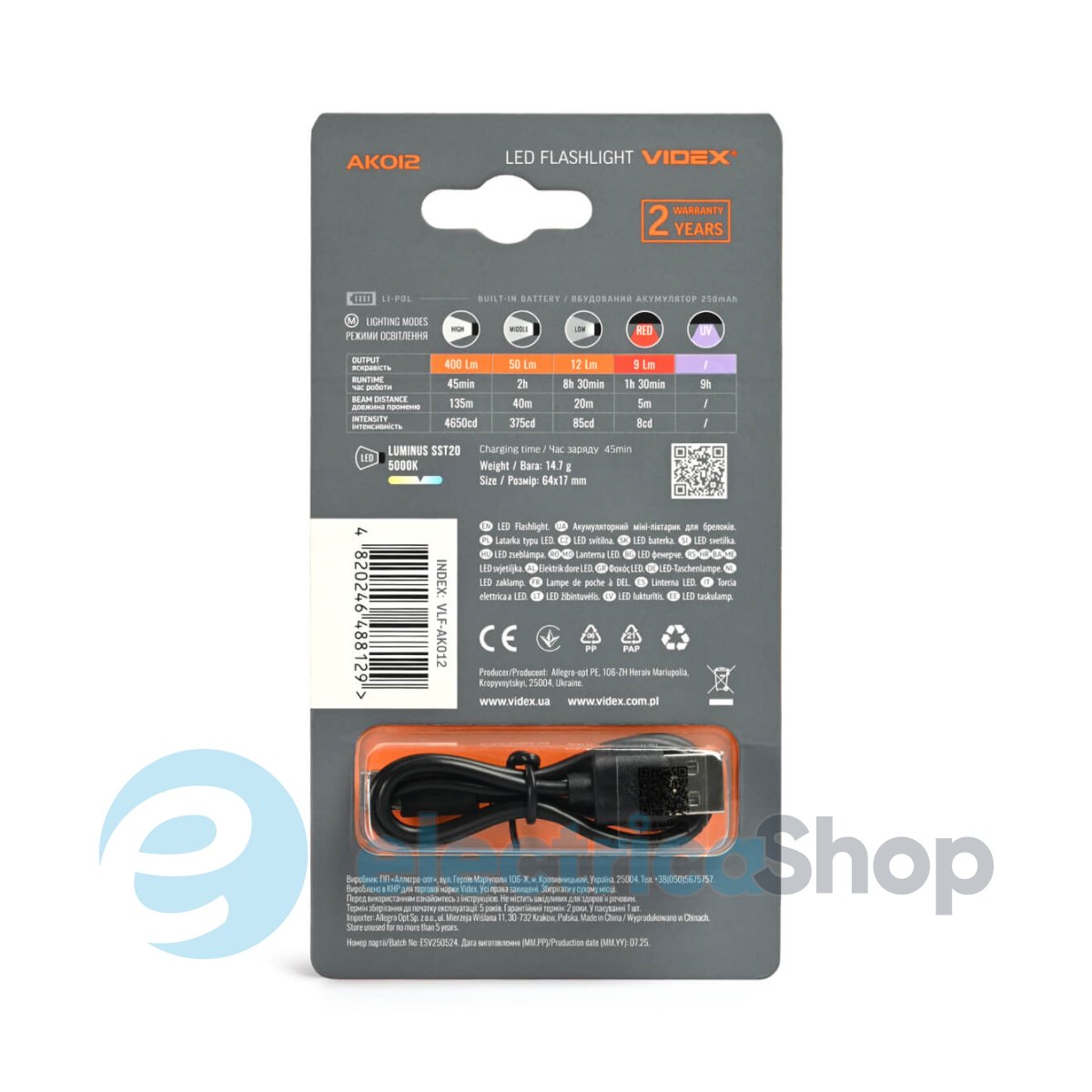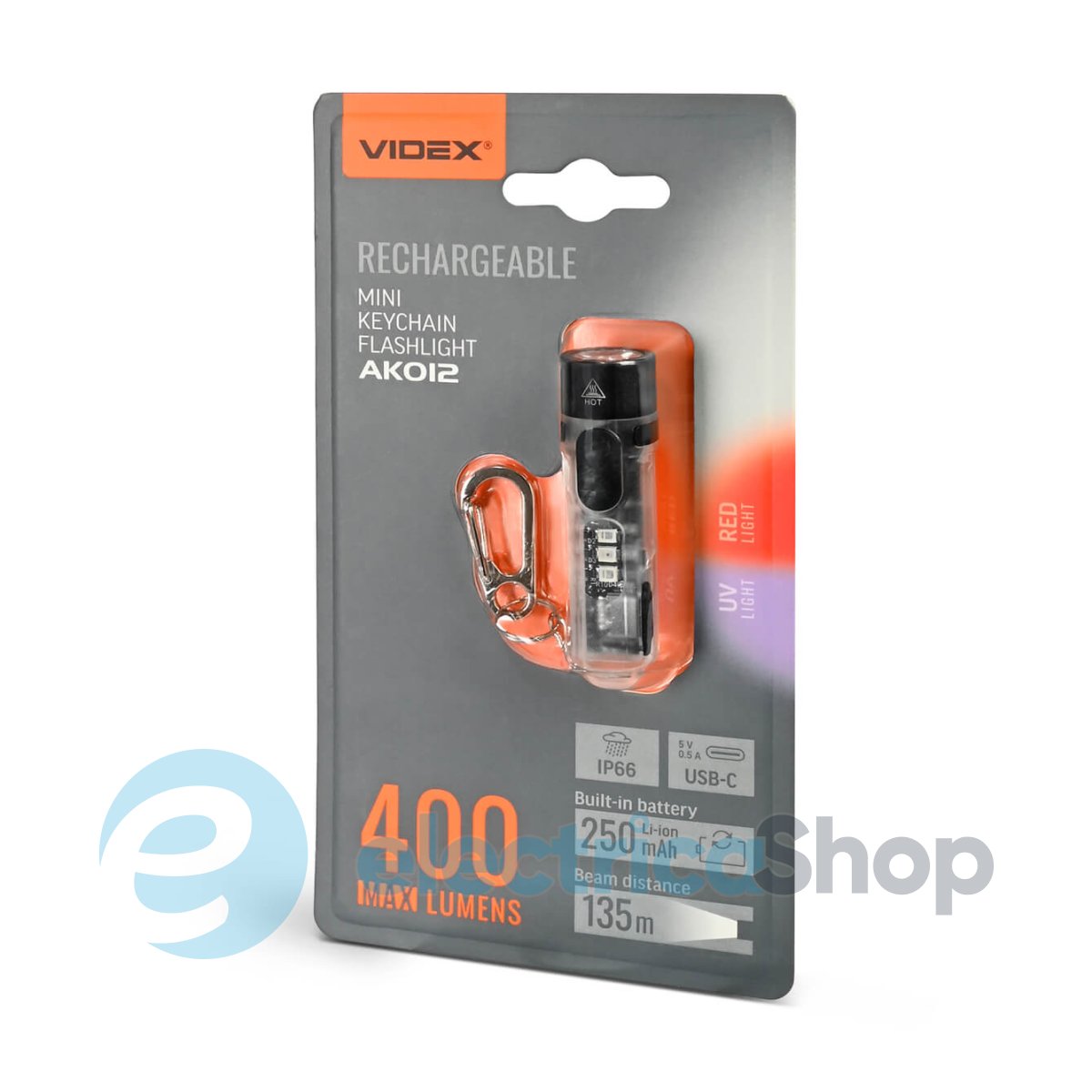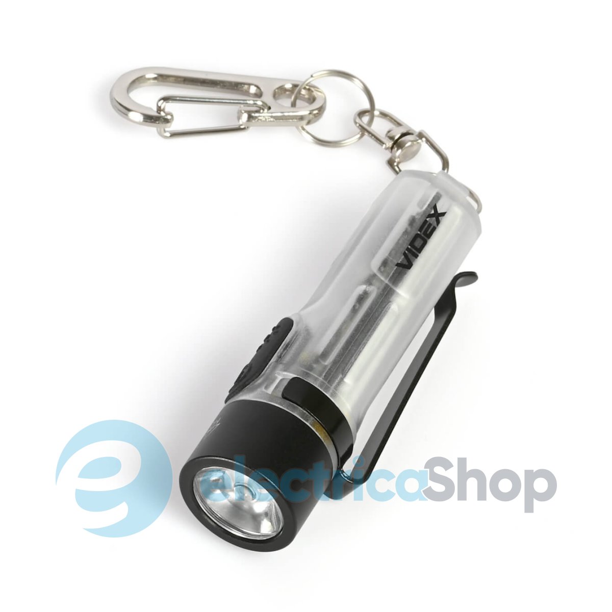 Портативний світлодіодний міні-ліхтарик VIDEX VLF-AK012 — це компактна та легка модель із яскравістю до 400 лм і нейтральним світлом 5000K. Дистанція освітлення — до 135 м. Він працює від вбудованого Li-Pol акумулятора та заряджається через USB-C всього за близько 45 хвилин. Ліхтарик має 5 режимів роботи, включно з білим, червоним та ультрафіолетовим світлом, що робить його універсальним для різних сценаріїв. Функція пам’яті автоматично зберігає останній обраний режим. Корпус з алюмінію та полікарбонату забезпечує захист від пилу й вологи за стандартом IP66, а також стійкість до падінь з висоти до 2 метрів. Завдяки розміру 17×64 мм і вазі лише 14,7 г ліхтарик зручно носити як брелок на ключах. Просте кнопкове керування дозволяє легко користуватися ним однією рукою. Модель VIDEX VLF-AK012 — надійний кишеньковий ліхтарик для щоденного використання, подорожей і активного відпочинку.
