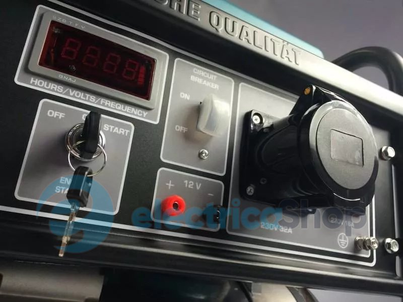 Ергономічна панель керування генератора дозволяє з легкістю керувати його роботою завдяки зручному розташуванню усіх функцій: сучасного LED-дисплею (лічильник мотогодин, частота, вольтаж), електрозапуску (опціонально), автоматичного вимикача при перенавантаженнях, датчику низького рівня оливи, розеток, роз’єму заземлення, клем та інше. -
