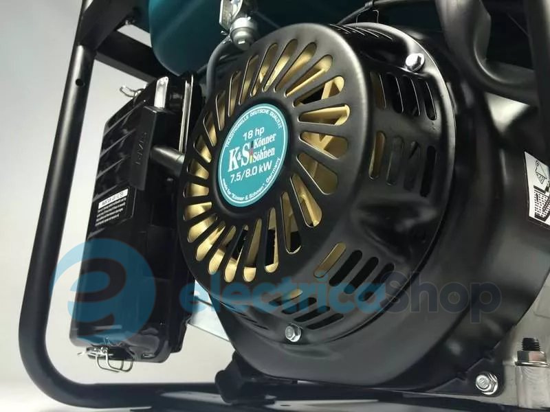 Двигуни відповідають усім світовим та європейським стандартам якості, економічності, екологічності (зокрема рівень шкідливих викидів та рівень шуму). Кожний двигун та кожний генератор мають свої індивідуальні серійні номери, що дозволяє нам контролювати якість виробництва та сервісного обслуговування. Двигуни Könner & Söhnen вирізняються легким стартом та пониженою вібрацією. Лінійка бензинових генераторів KS 10000 оснащена надійним 1-циліндровим двигуном потужністю 18 к.с -