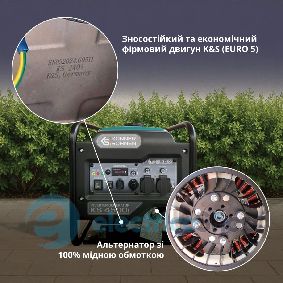 - ВИСОКОЯКІСНИЙ АЛЬТЕРНАТОР: У генераторах інверторного типу Könner & Söhnen встановлено високоякісний безщітковий альтернатор зі 100% мідною обмоткою. Надійний та компактний альтернатор встановлений на постійних магнітах, у пластиковому кожусі та може витримувати максимальні навантаження без ушкоджень, гарантує тривалу надійну роботу генераторної установки.