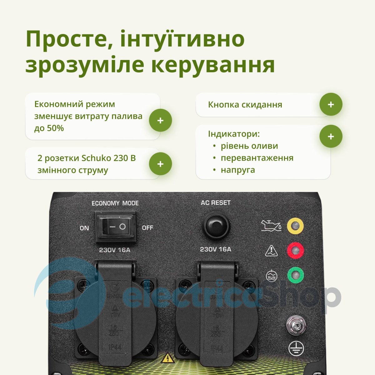 - Стабільна та безпечна робота з чутливою технікою – завдяки інверторній технології генератор підходить для медичного обладнання та цифрової електроніки.