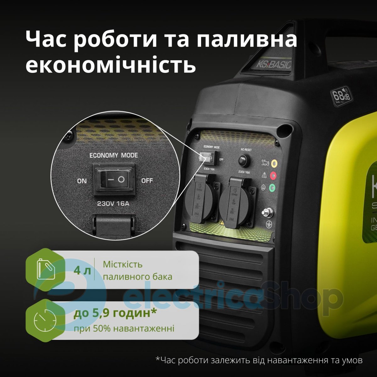 - Високоякісний альтернатор: У генераторах інверторного типу KS Basic встановлено високоякісний безщітковий альтернатор зі 100% мідною обмоткою. Надійний та компактний альтернатор на постійних магнітах, може витримувати максимальні навантаження без ушкоджень, гарантує тривалу надійну роботу генераторної установки.