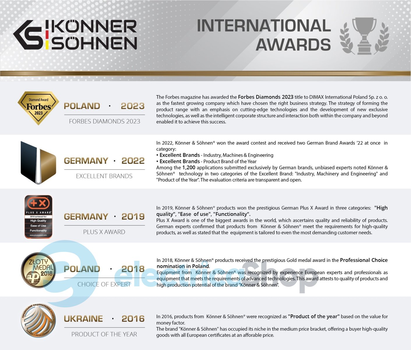 Всі портативні зарядні станції Könner & Söhnen оснащені технологією Power Delivery, що забезпечує швидке заряджання акумуляторів сучасних смартфонів і навіть ноутбуків. Багатопортова, сумісна з безліччю приладів та включає: 1 порт постійного струму DC, 1 порт змінного струму AC, 1 порт швидкої зарядки USB PD Quick Charge 3.0, 2 порти USB 2.1, 1 порт USB Type-C, що зручно для живлення різноманітних електронних пристроїв. -