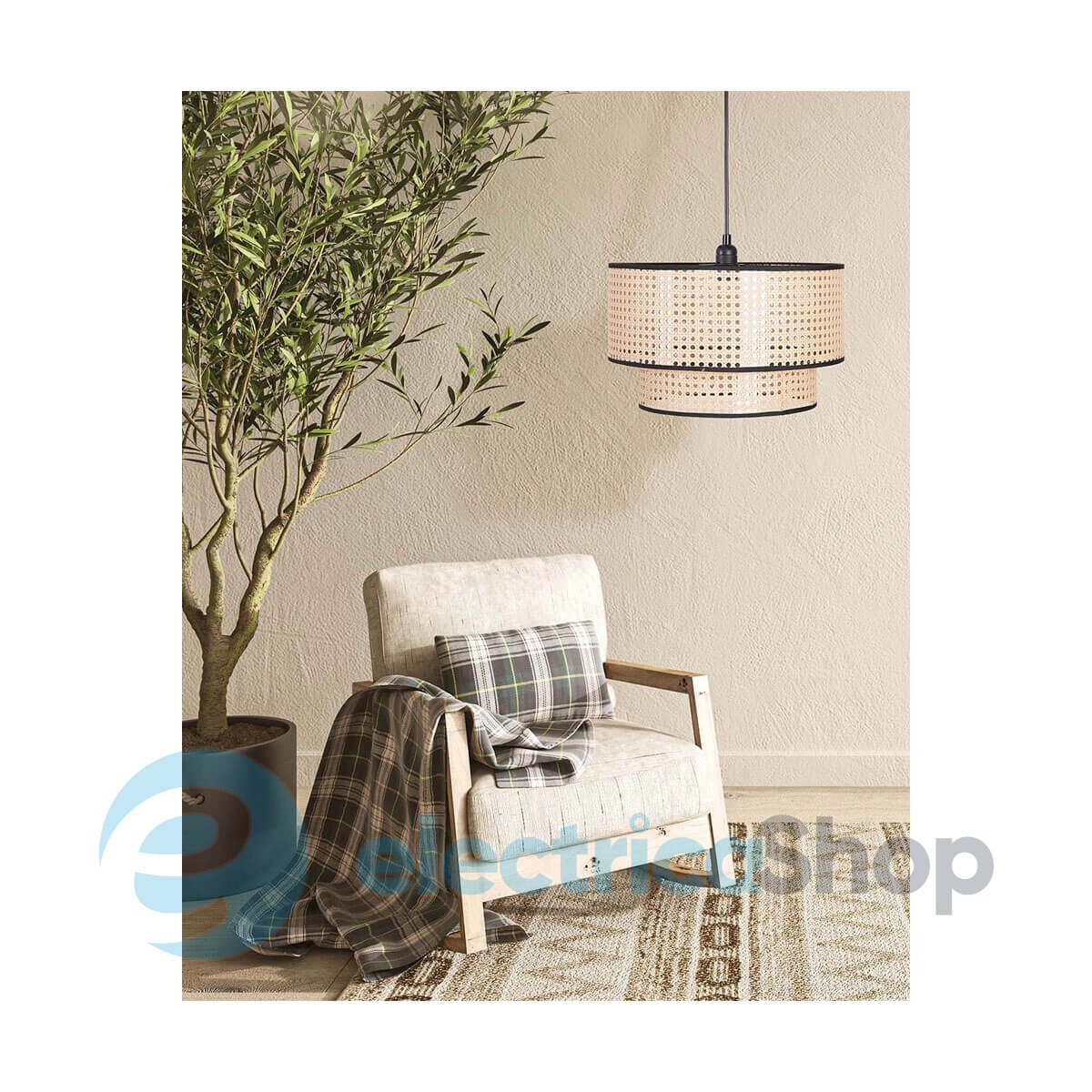 - Матеріал плафонів: Ротанг