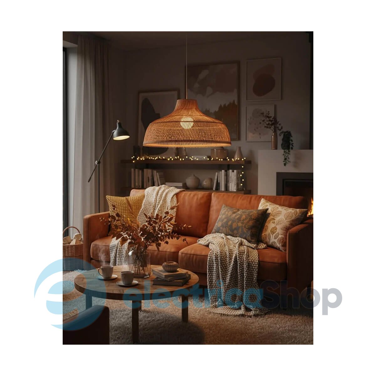 - Матеріал плафонів: Ротанг