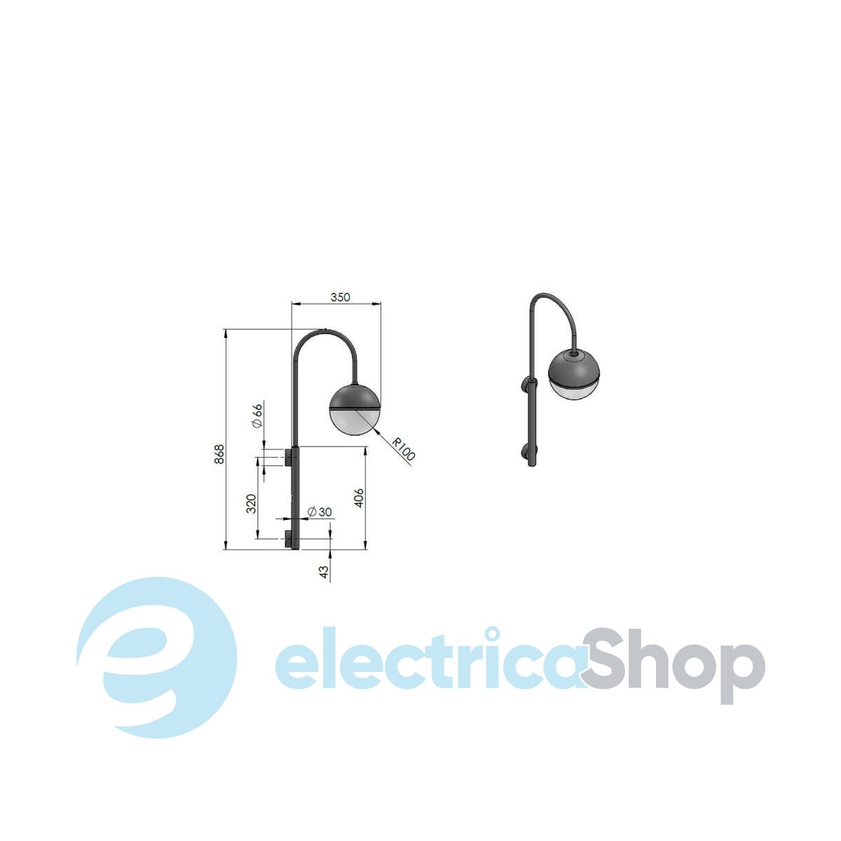 - Вид плафона: Куля