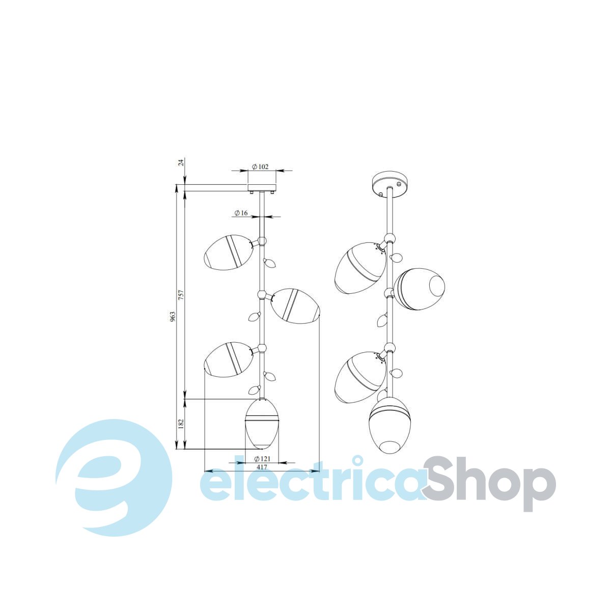 - Тип світильника: Люстра