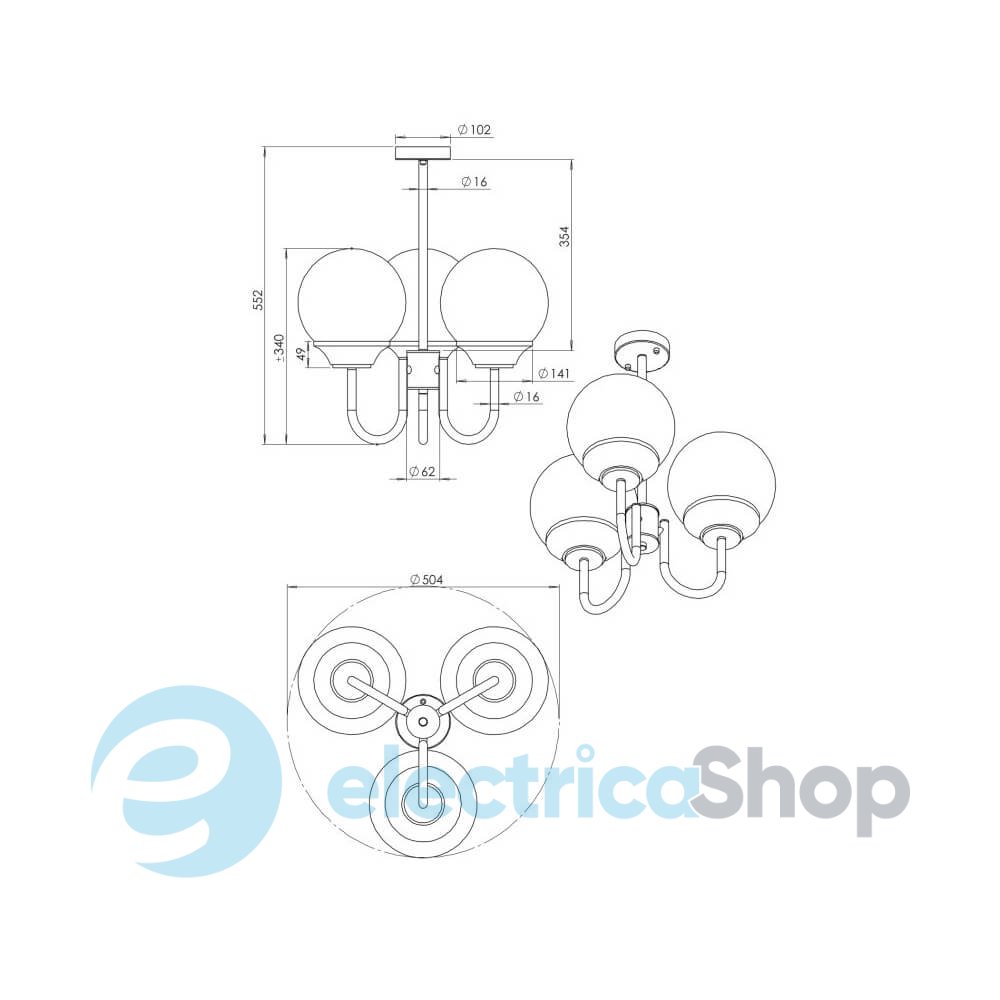 - Тип світильника: Люстра, Світильник