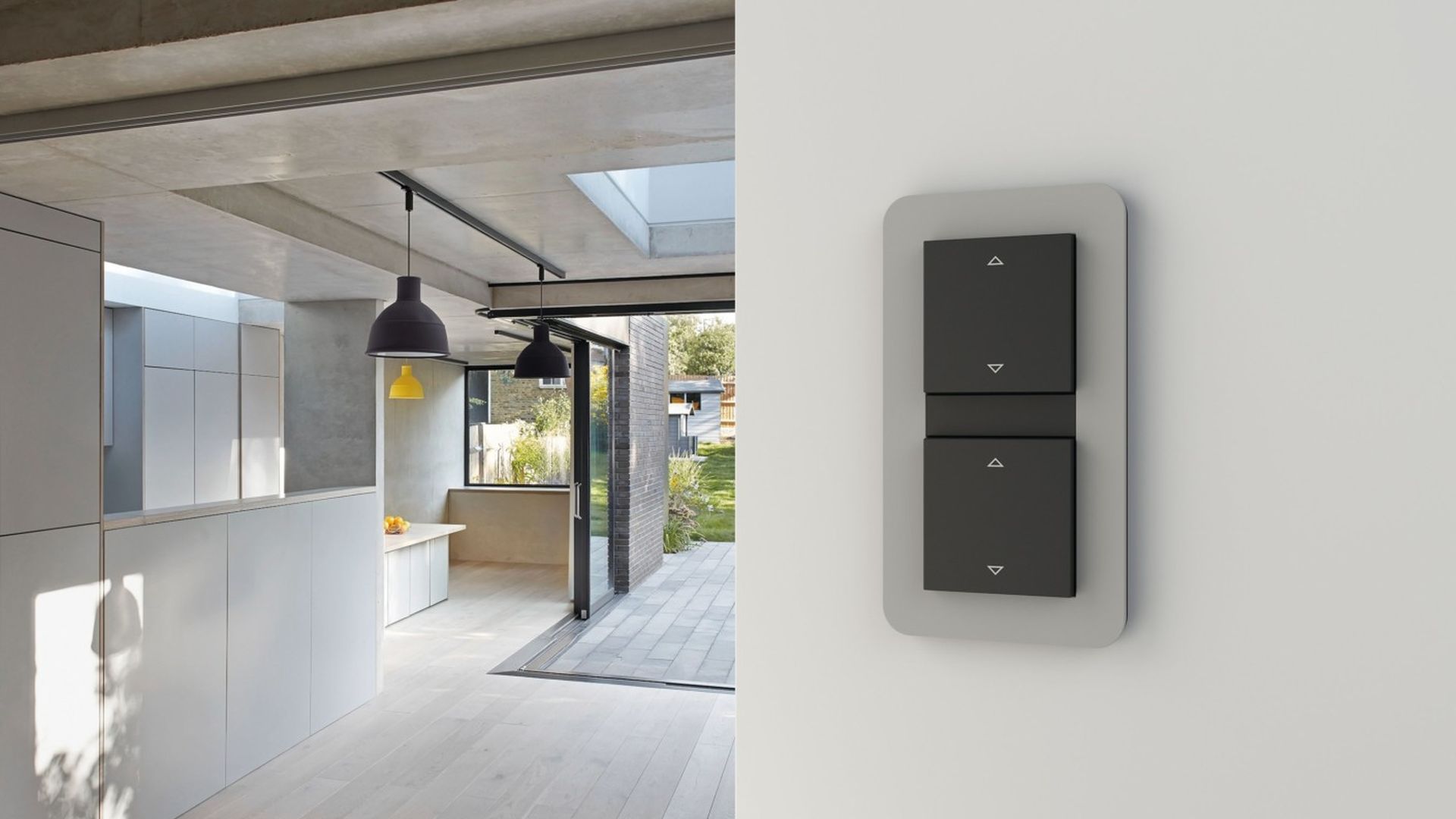 Установча рамка Gira E3 з м'якою на дотик поверхнею темно-сірого кольору з несучої рамкою антрацитового кольору.
