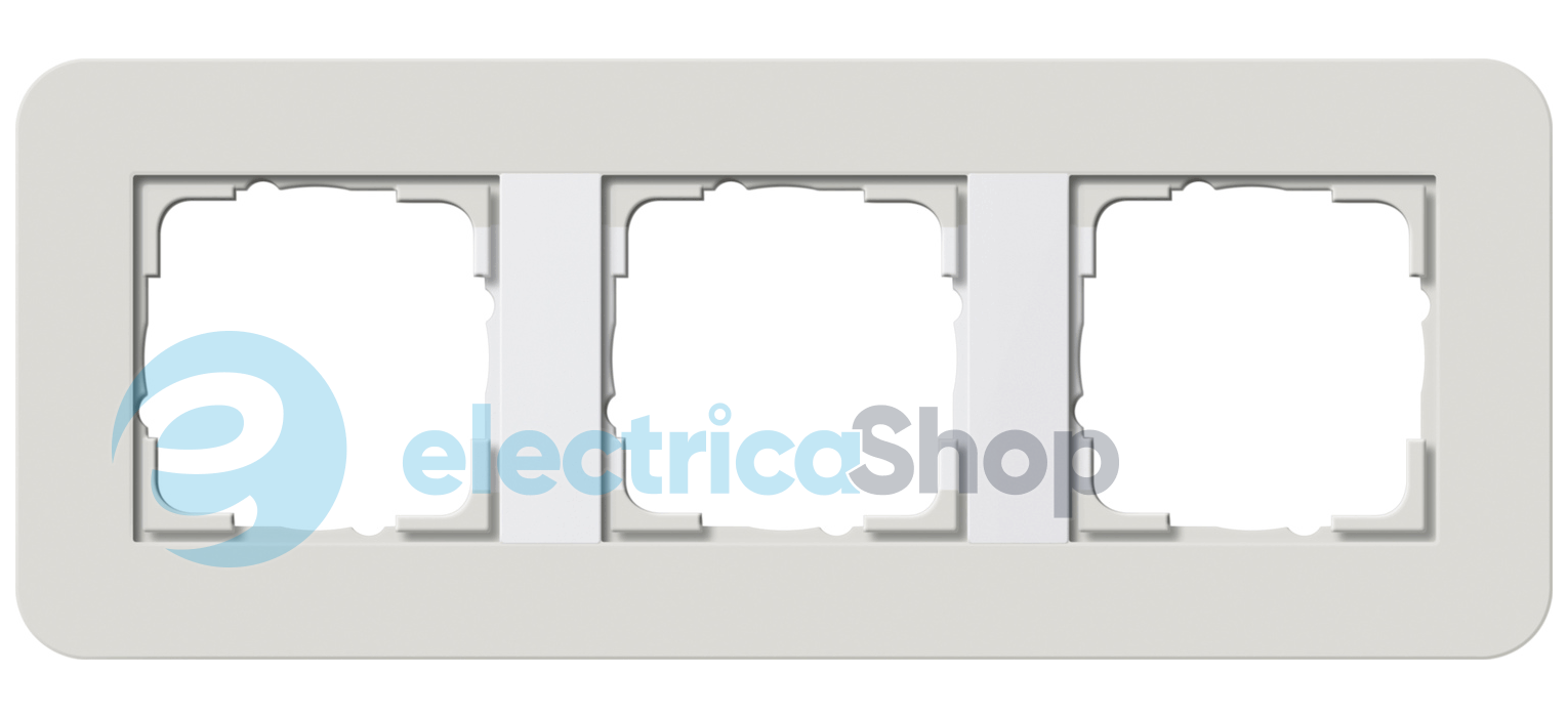Установча рамка Gira E3 з м'якою на дотик поверхнею світло-сірого кольору з несучої рамкою білого кольору.