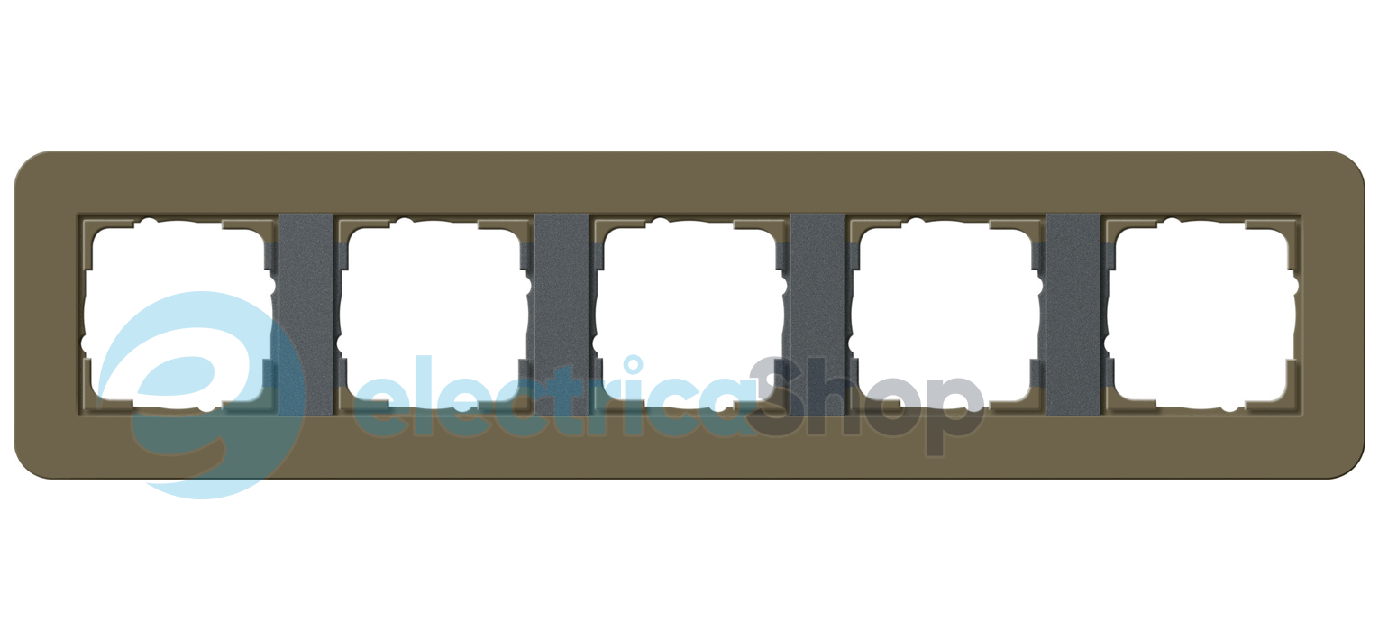 Установча рамка Gira E3 з м'якою на дотик поверхнею димчастого кольору з несучої рамкою кольору антрацит.