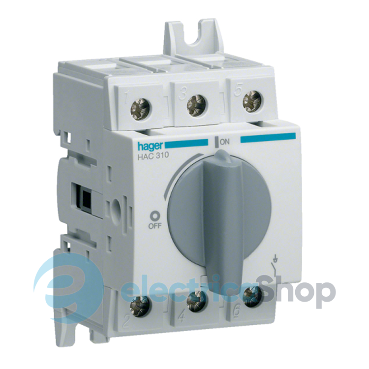 Рубильник 3-полюсний, модульний, з поворотною ручкою виробництва фірми Hager (Франція).